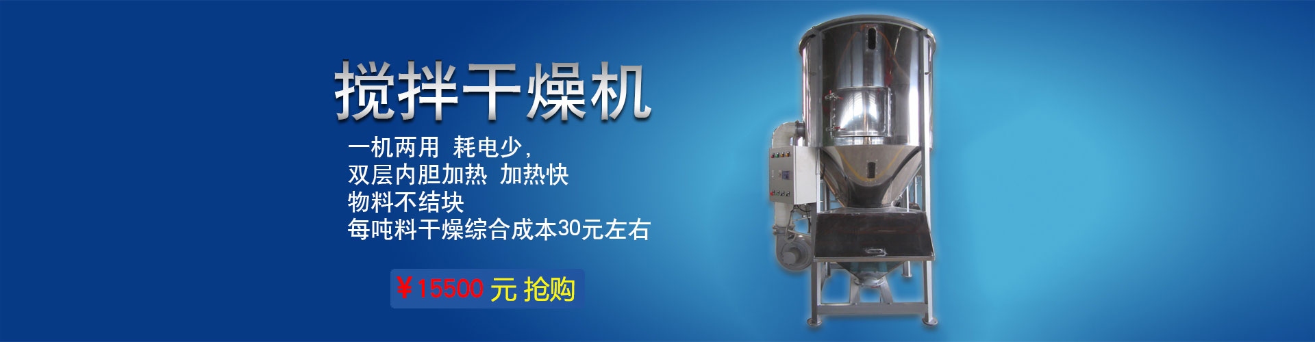 本公司專業生產塑料烘干機、攪拌干燥機、立式拌料機、塑料拌料機、塑料攪拌機、立式攪拌機、塑料混料機、不銹鋼攪拌機、螺旋上料機、彈簧上料機、粉體攪拌機、臥式攪拌機、食品上料機、攪拌烘干機、塑料拌料機、立式混色機、塑料混合機、大型立式攪拌機等注塑機周邊設備。我司經過多年的努力和研究,在攪拌粉末料這方面有了重大的突破。引得了很多客戶的肯定,特別是在國內市場備受歡迎。